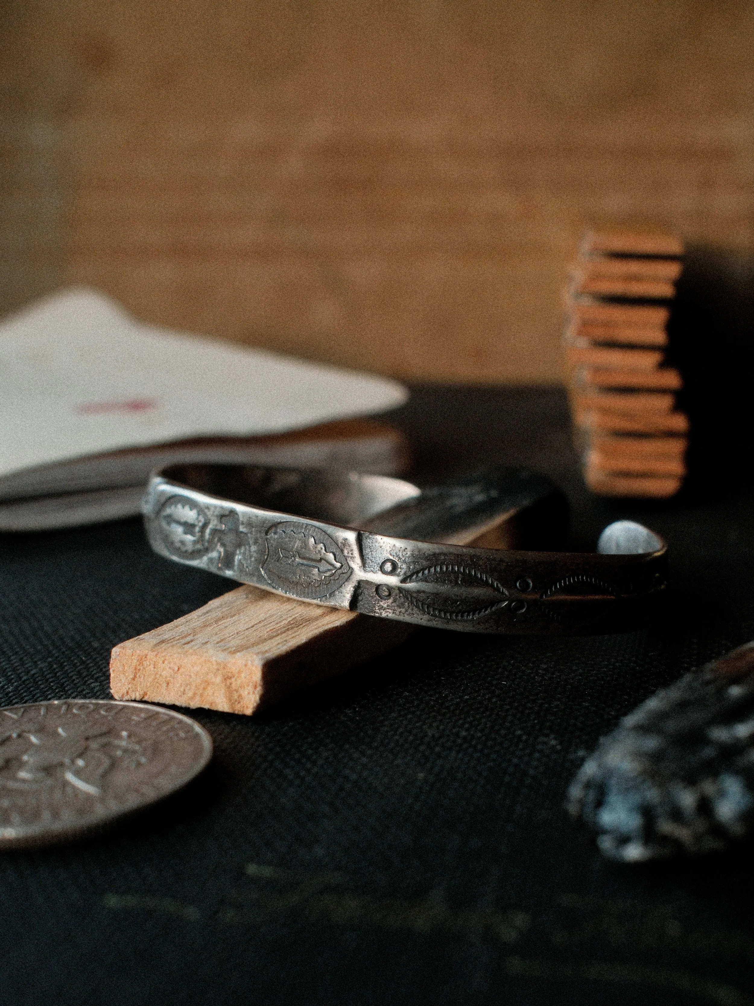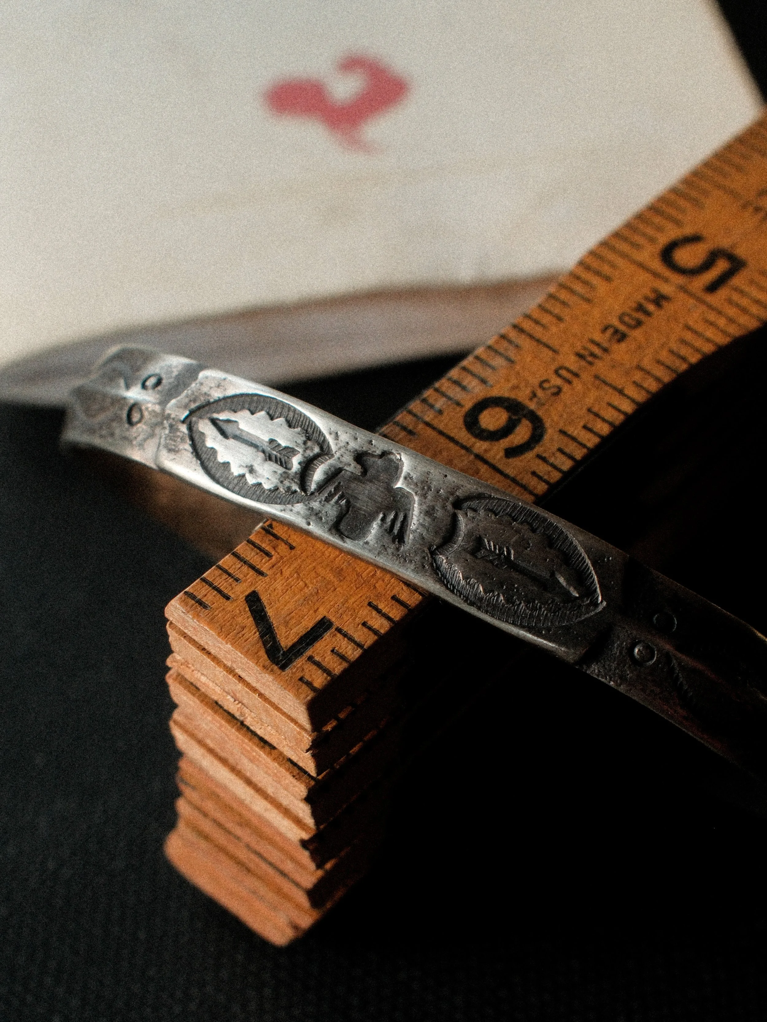 Stamped with a collection of our one-of-a-kind, handmade steel stamps