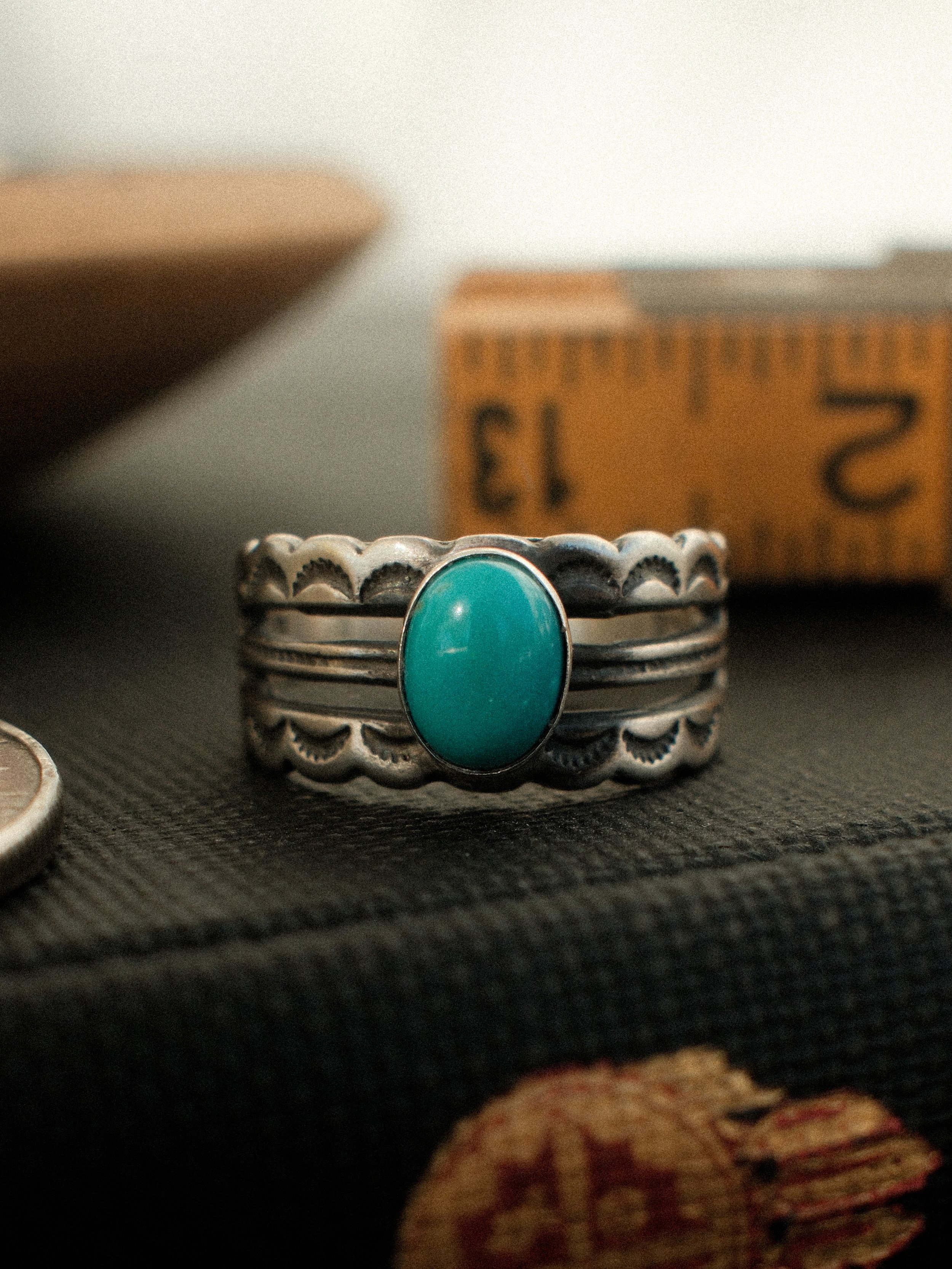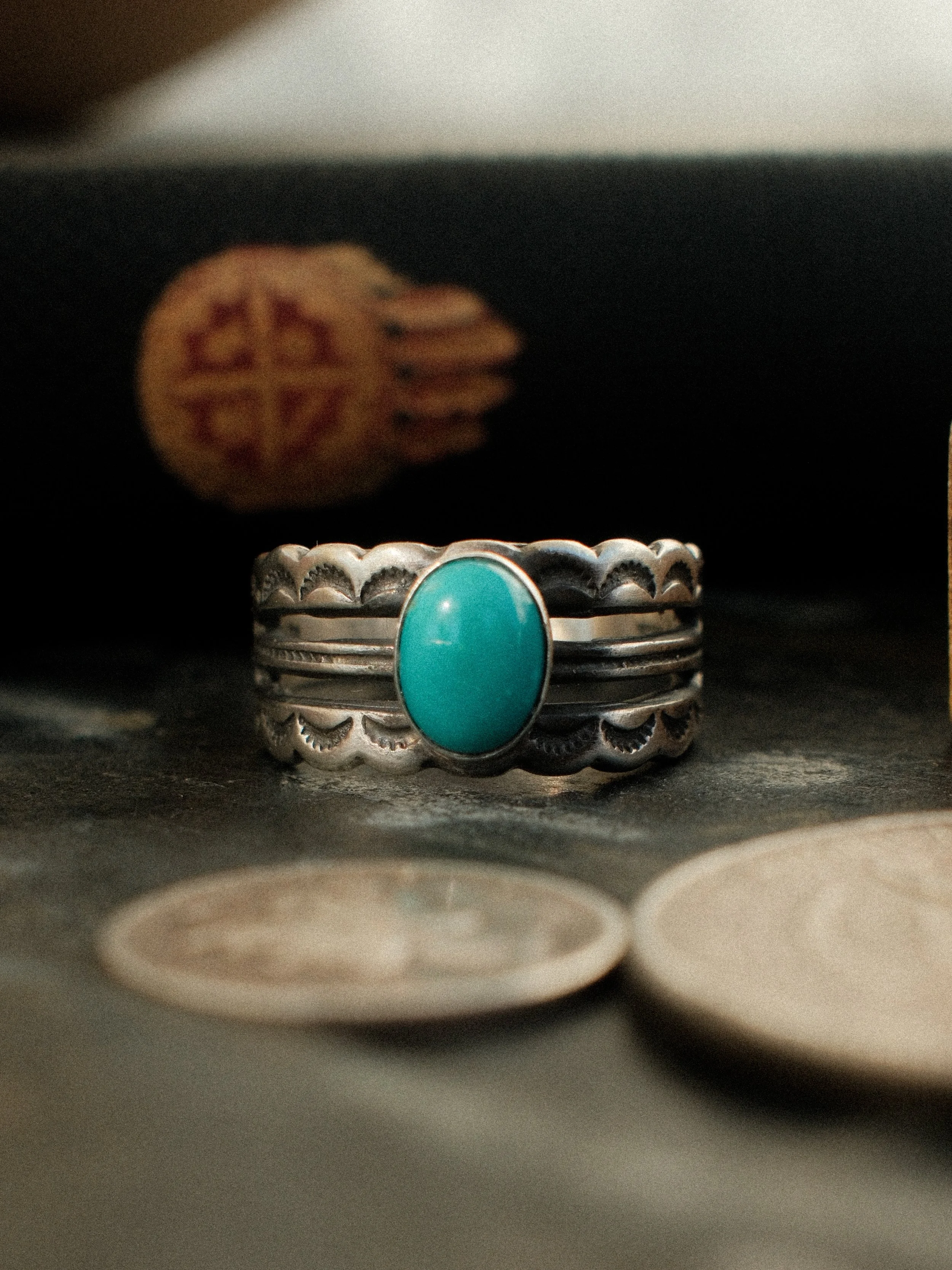 Rings Categories: All Heritage (One-of-a-kind) Rings Cuffs Necklaces Earrings The Common Rings Cuffs Cloth Necklaces Pins Earrings Object Lost & Found Rings Cuffs Necklaces Pins Belts Rings All Heritage (One-of-a-kind) The Common Rings Cuffs Cloth Necklaces Pins Earrings Object Lost & Found Turquoise Stacking Ring $28.00 Fox "Vado" Ring $78.00 Fox "Rito" Ring $88.00 Fox Arrowhead Ring $98.00 The Bodie Ring $118.00 The Dodge Ring $118.00 The Cheyenne Ring $118.00 The "Ramble" Ring $148.00 "RISING BIRD" CIGAR BAND RING $128.00 Concho Cigar Band Ring $148.00 Fox Horseshoe Ring $188.00 Royston "Duel" Ring $188.00 The "Hombre" Ring $198.00 The Original "Chief" Ring $228.00 Black Onyx "Mesa" Ring $228.00 Thunderbird Cigar Band Ring $198.00 Sonoran "Bandolero" Ring $238.00 Standard "Amigo" Ring $248.00 Kingman "Saguaro" Ring (6.5) $248.00